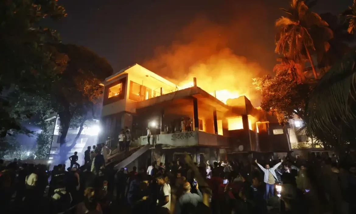 مشتعل مظاہرین نے بنگلہ دیش کے بانی شیخ مجیب الرحمان کے آبائی گھر کو آگ لگا دی۔