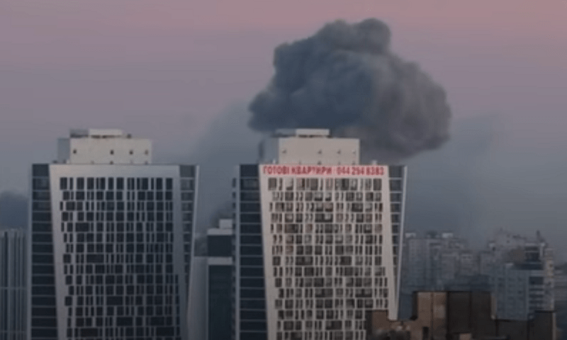 روس نے دارالحکومت سمیت یوکرین کے شہروں پر بڑے پیمانے پر میزائل حملے کیے ہیں جو جنگ کے آغاز کے بعد ملک پر ہونے والے سب سے بڑے حملوں میں سے ایک ہے۔